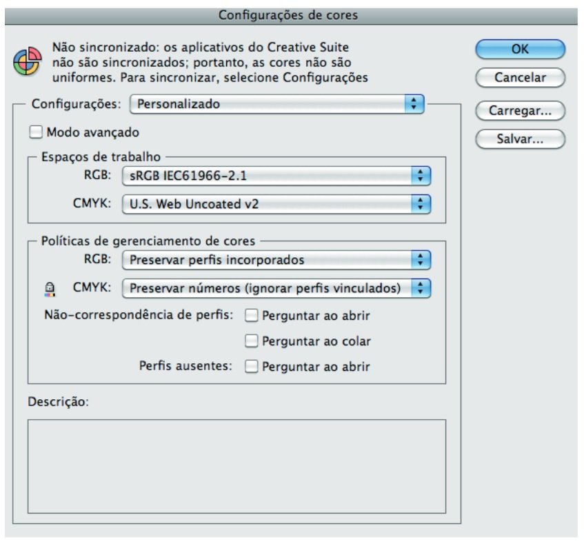 Para padronizar o sistema de controle de cores das nossas impressoras, utilizamos a norma ISO 12647.4 Esta é uma norma internacional que utiliza os perfis de cores ISO Coated v2 (ECI) e o ISO Coated v2 300% (ECI). Mesmo com o uso destes padrões, não é possível garantir que as cores que aparecem em seu monitor ou em provas impressas em impressoras convencionais sejam as mesmas do impresso final. Para obter impressos com fidelidade de cor, é necessário que seja feito um orçamento específico, com provas e produção adequadas a esta solicitação.