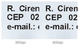 Observe o texto da esquerda como está mais serrilhado (300dpi) e o da direita mais suavizado (600dpi).