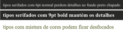 Para uma boa visualização de texto nos fundos chapados, utilize 40% de contraste, ou seja, para o fundo de 100%K a fonte deverá ter 60%K ou menos.